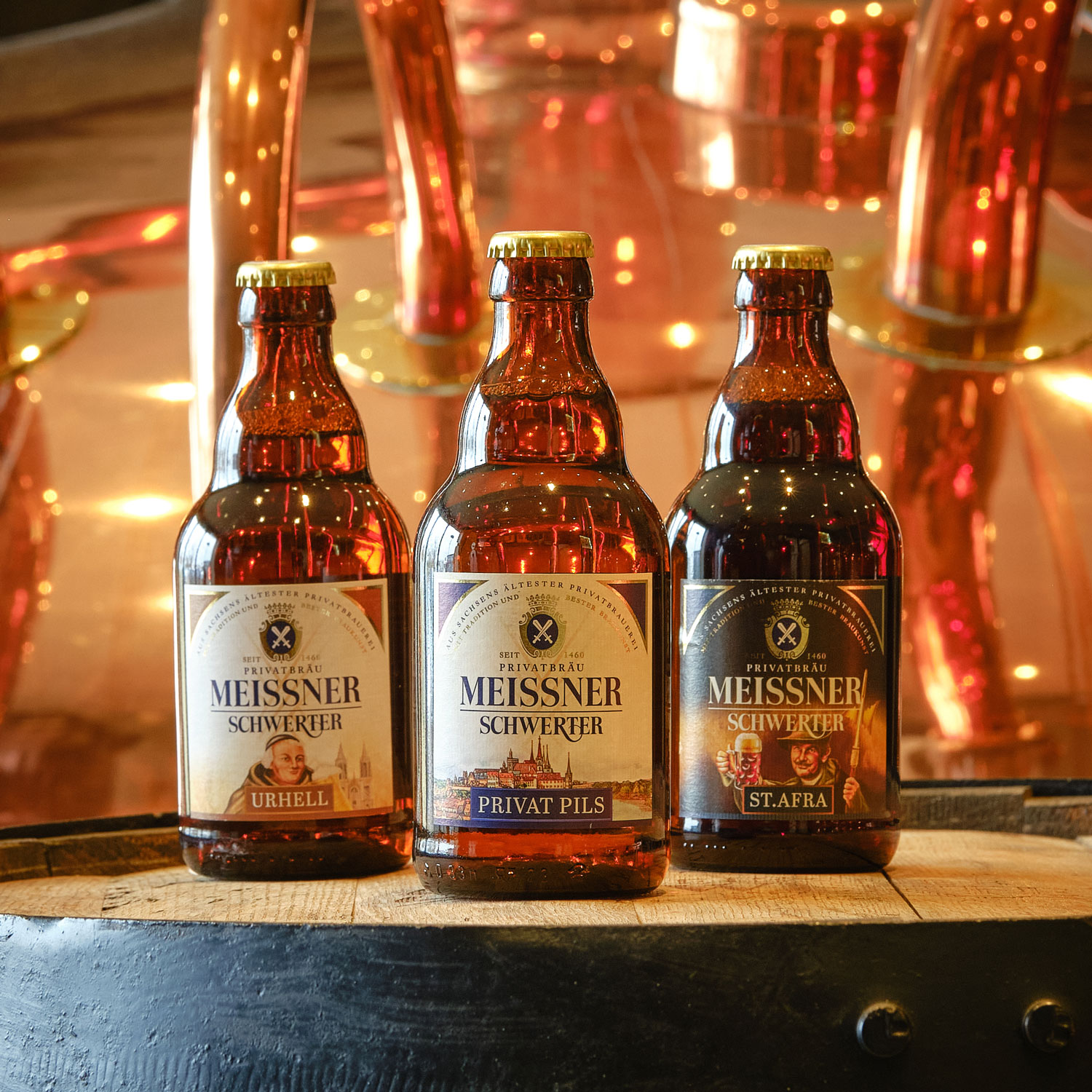 Ob Meissner Schwerter Privat Pils, St. Afra Schwarz oder – ganz neu – unser mildes Urhell: In der sympathisch-kultigen Steinie-Flasche, die übrigens deutlich stand- sowie bruchsicherer ist, werden unsere Freunde, Kunden und Fans die drei Biere aus Meißen noch mehr genießen!